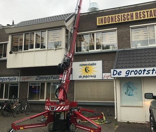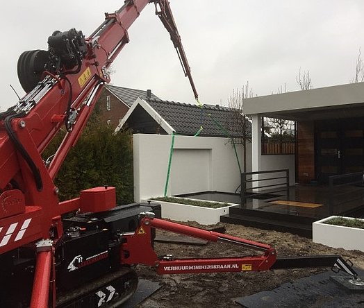 Hijswerkzaamheden op een moeilijk toegankelijke plaats? Vanwege bijvoorbeeld een smalle doorgang of bijna onbereikbare verdieping? Geen locatie is voor R. Lekkerkerker Minihijskraan Verhuur te gek. Onze hijskranen zijn enorm compact, zodat zélfs uw loopdeuropening ruim genoeg is voor deze machinekracht. Dankzij de uitgekiende hijscapaciteit van de minihijskraan bereiken wij grote hoogtes voor allerlei projecten. En het minimale gewicht plus de non marking rupsen van de ijzersterke minihijskraan, laten ons op tal van ondergronden werken. Eventueel gecombineerd met kunststof rijplaten. Daarbij bieden onze diverse glaszuigers uitkomst bij het hijsen van o.a. glas en natuursteen.